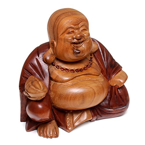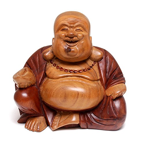 NOVICA Hand Carved Natural Acacia Wood Buddha Sculpture, 8" Tall, 'Buddha Laughs'
