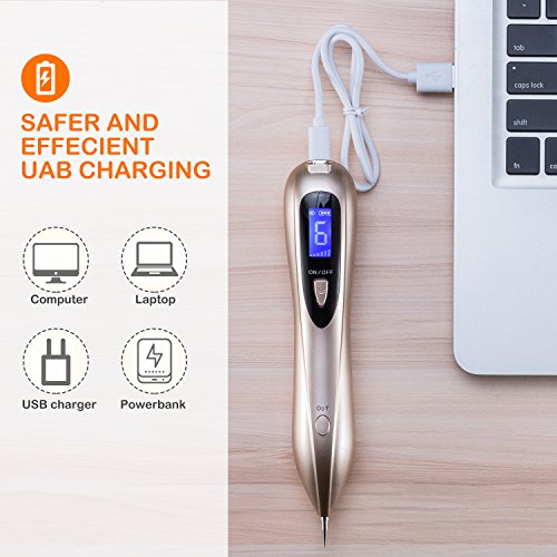 - UPGRADE DETAILS: This spot eraser pro beauty skin machine built-in overcharge protection and comes with charging cable. You can charge it via USB ac adapter, power bank, computer or car charge. High capacity battery offer 2-4 hrs of runtime with fully charged. LCD display makes the working status, battery status and strength mode can be showed which helps you control the device better.