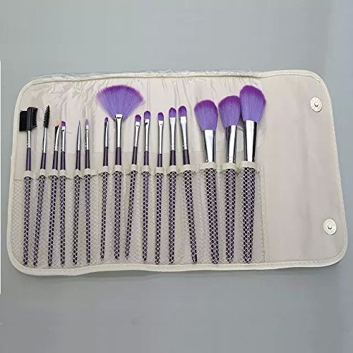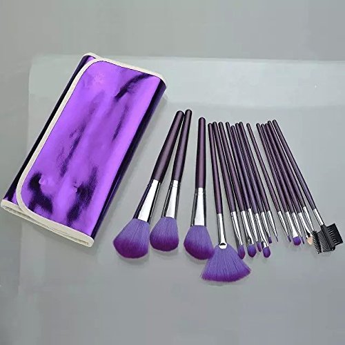 16 pcs professional makeup brushes set with purple bag.