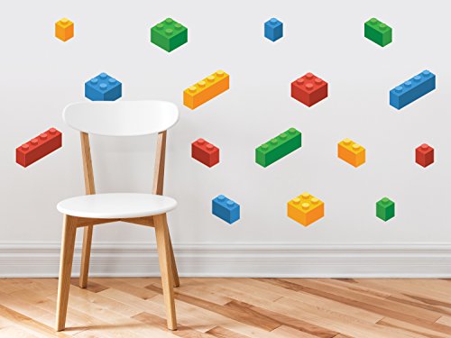 -. Title : Building Block Bricks Fabric Wall Decals, Set Of 16 Blocks In 4 Colors - Removable, Reusable, Respositionable