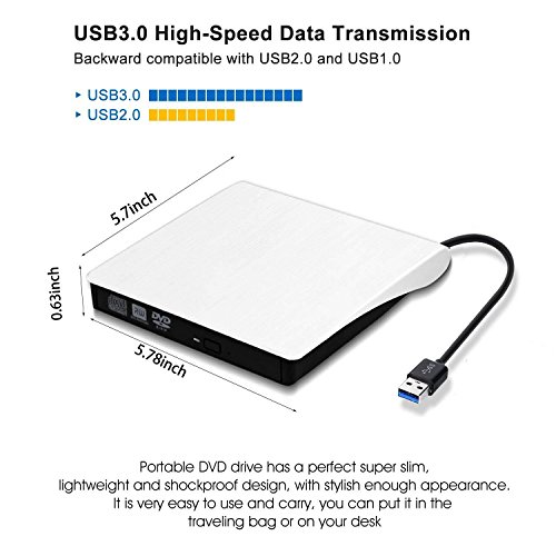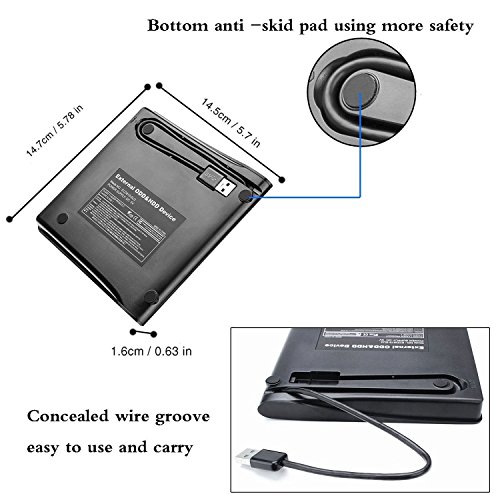 Classic Exterior Hairline Finishing:This external dvd burner has a cool and fashionable body with an internal 9.5mm chip. Powered by the USB port, requires no external adapter or drives. Plug and play