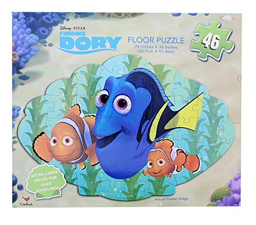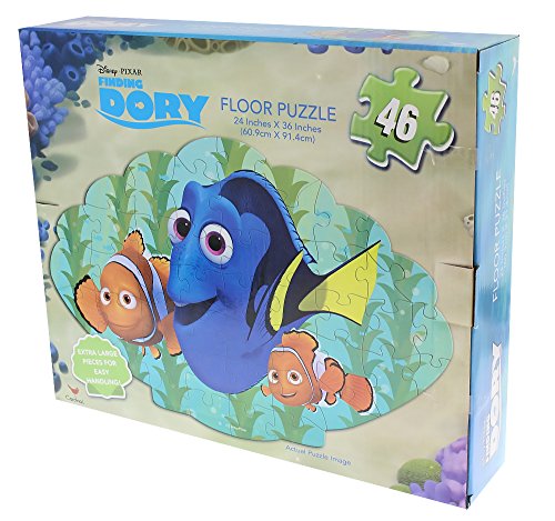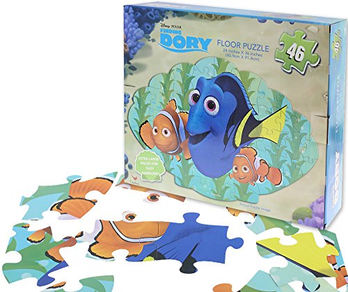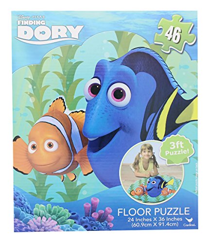 -. Binding : Toy -. Brand : Disney -. EAN : 0697691641836 -. Feature : Disney/ PIXAR Finding Dory Floor Puzzle 46 Pieces is a full color extra large piece floor puzzle that measures 3 ft. long for children 2 and up. / Have fun assembling this vibrant colored puzzle featuring the lovable characters Marlin, Nemo and Dory. / The extra large puzzle pieces make for easy handling; especially for children's hands. / Makes a great gift for children, family and friends! / Dimensions: 3 Feet long (24 x 36 Inches) -. IsAdultProduct : 0 -. Label : Disney -. Manufacturer : Disney -. MPN : 0 -. PartNumber : 0 -. ProductGroup : Toy -. ProductTypeName : TOYS_AND_GAMES -. Publisher : Disney -. Studio : Disney -. Title : Disney/ PIXAR Finding Dory Floor Puzzle 46 Pieces - 3 Ft. Long (24 x 36 Inches) -. UPC : 697691641836