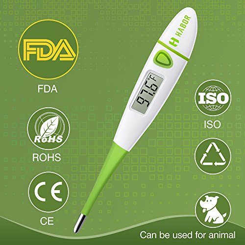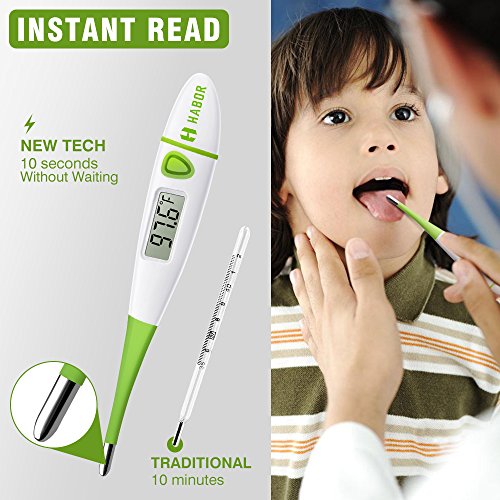 Habor Digital Medical Thermometer, Oral Thermometer Fast 10 Second Reading Rectal and Axillary Thermometer with Fever Alarm for baby Kids and Adults