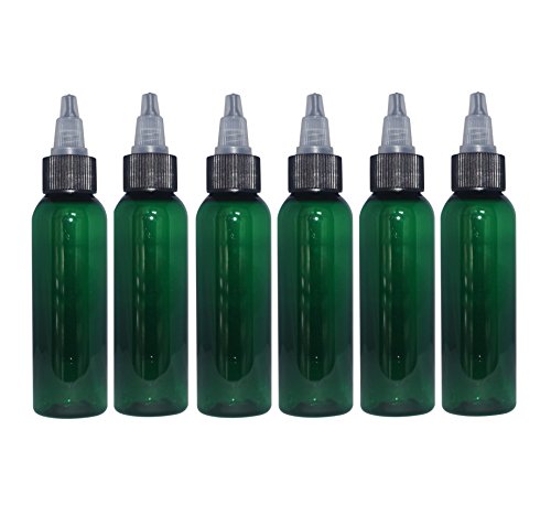 - (Pack of 6) - 2 oz Green Cosmo Bullet. Refillable, Empty PET Plastic Bottles w/ Black Yorker Twist Open Top – Mfg. USA