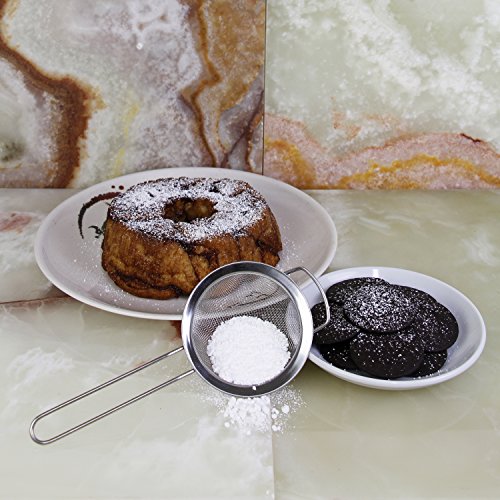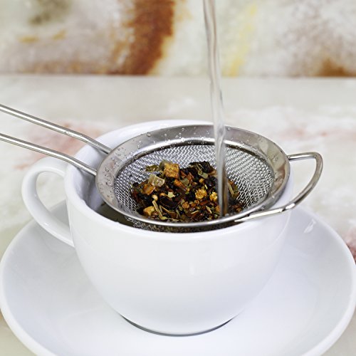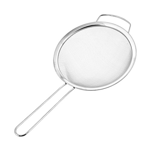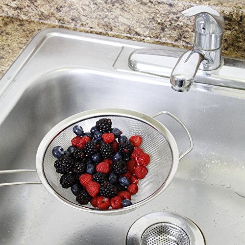 - SIFT, STRAIN AND RINSE: Our strainer sieves are great for sifting and filtering out impurities and breaking up clumps in dry ingredients like flour, sugar and spices. Also use them for rinsing fruits and vegetables or fine grains and pastas like quinoa, rice and orzo. Strain thick or thin wet ingredients like sauces, lumpy gravy and yogurt or for removing seeds from squeezed fruit juices.