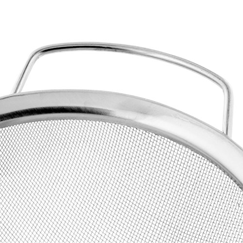 - 4 PROFESSIONAL GRADE FINE MESH STRAINERS: 4 sizes of premium high performance stainless steel fine mesh round strainers that are perfect for sifting and straining wet or dry ingredients. All sizes feature a sturdy outer mirror finished broad rimmed framework design, and have rust-proof firm fine mesh strainer screens with securely attached long handles. They contain a wide resting ear design for extra stability. Our durable and sturdy strainers are built to last for a lifetime.