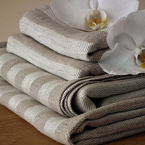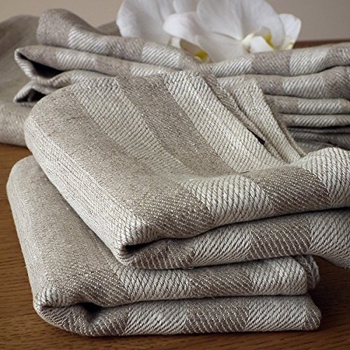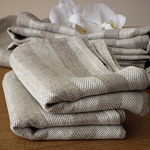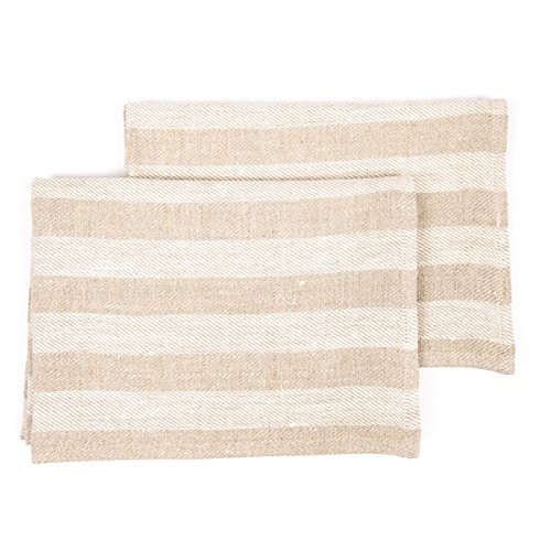 LinenMe Linen Lucas Hand and Guest Towels, 13 by 20-Inch, Natural Striped, Set of 2