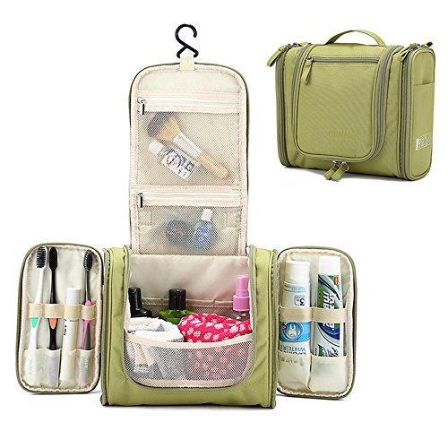 Reinforced hook and carrying handle are allowed to be hung up on towel rack, shower rod, or door handles conveniently. With secure zipper closure, your items will be organized well and protected safely. With this toiletry kit, you are always ready to go and to look your best. 0