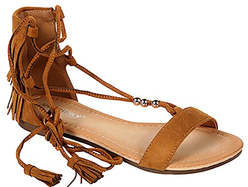 (Ladies)/Women's/Sandals/DIRECT FROM USA/Ladies Sandal-High Top Back Fringe Single Front Band Flat Sandals