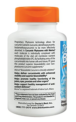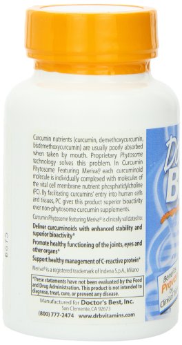 -. Binding : Health and Beauty -. Brand : Doctor's Best -. Label : Doctor's Best -. Manufacturer : Doctor's Best -. PackageQuantity : 1 -. ProductGroup : Health and Beauty -. ProductTypeName : HEALTH_PERSONAL_CARE -. Publisher : Doctor's Best -. Studio : Doctor's Best -. Title : Doctor's Best Curcumin Phytosome Featuring Meriva Vegetarian Capsules