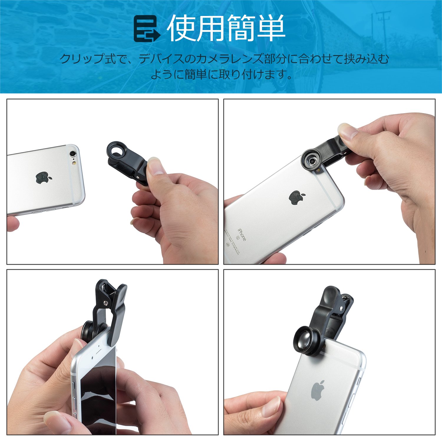 It is a clip type and it is easy to install so as to pinch it in accordance with the camera lens part of the device.