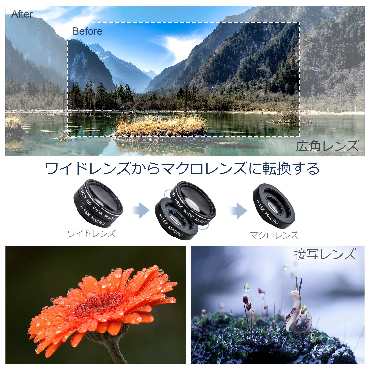 When it is removed by turning the wide lens, it becomes a macro lens, it can be used easily.