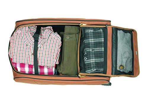 -. Feature : Built of 1200D Poly with Rain Defender® durable water repellent and Duravax™ base / 80mm treaded wheels with extension handle / Exterior zippered pocket to store ticket, books or tablet / Large main compartment with multiple interior pockets and compression straps for clothes and gear / Dedicated shoe compartment