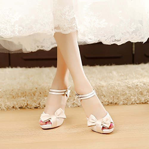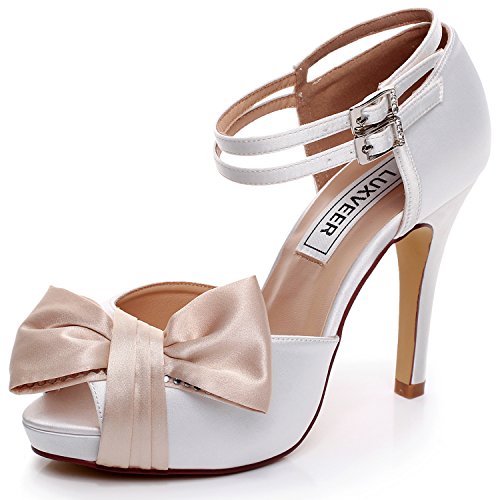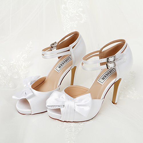 Combining satin, sparkling diamante and a bowknot to stunning effect, LUXVEER is the ultimate in bridal luxury. A low platform peep-toe sandal, LUXVEER is crafted from exquisite lace, giving the style a thoroughly feminine quality that is enhanced by its truly show-stoppping diamante encrusted heel. It is the dream of any bride to ewar the most beautiful attire on the most special day of her life,which is of course the day of her wedding. Everything has to be perfect, the wedding grown,wedding jewelry and of course the wedding shoes. Shoes Size from US5 to US10. Our wedding sandals has been soled to different countries,so all shoes has EUR size on the sole. LUXVEER Women's Shoe Sizing Chart Size(USA) European US5 = EUR36 US6 = EUR37 US7 = EUR38 US8 = EUR39 US9 = EUR40 US9.5 = EUR41 US10 = EUR42 ---for Replacement--- *If the shoe happens not to fit well, either too small or big. Please refer to the size chart above, and contact Amazon for replacment. NOTE: 1.Please make sure the shoes has not been smudged(Dirty). 2.Shoes should be with origianl package when returned. 0 |