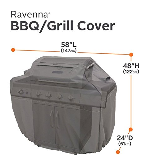 -. Binding : Lawn & Patio -. Brand : Classic Accessories -. EAN : 0052963027266 -. Feature : Fits Char-Broil 4-burner gas grills 58" long x 24" deep x 48" high / Limited lifetime warranty / Gardelle One is a durable woven polyester fabric with an added UV-stabilized coating and a water-resistant laminated undercoating / Water-resistant backing keeps your barbecue dry while elastic hem cords move easily through a special channel for a snug fit / Reinforced padded handles make removal easy while double-stitched seams add strength and a stylish accent / Structured vents stay open to prevent wind lofting and mildew and are lined with mesh barriers / Four (4) custom-colored buckles keep your cover secure in any weather / Adjustable webbing belts slide easily for a tailored look / Zippered top pocket for grill accessories / Not designed to entirely cover the wheels or leg bot / Char-Broil grills are a trademark of Char-Broil, LLC. Classic Accessories is not affiliated or associated with Char-Broil, LLC. or its products in any way / This is an aftermarket of generic part -. Label : Classic Accessories -. Manufacturer : Classic Accessories -. Model : 55-140-035101-CB -. PackageQuantity : 1 -. ProductGroup : Lawn & Patio -. ProductTypeName : OUTDOOR_LIVING -. Publisher : Classic Accessories -. Studio : Classic Accessories -. Title : Classic Accessories 55-140-035101-CB Ravenna Grill Cover For Char-Broil 4-Burner Gas -. UPC : 052963027266 -. Warranty : 4 year warranty
