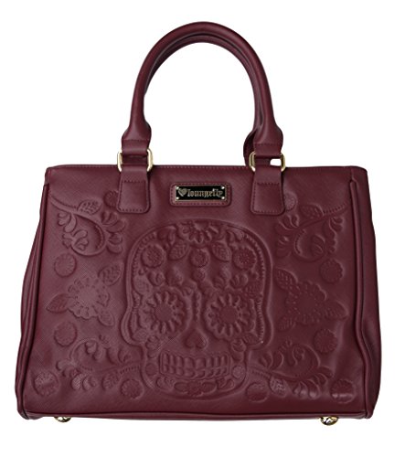 Loungefly Sugar Skull Day of the Dead Vegan Burgundy Shoulder Bag Handbag Purse
