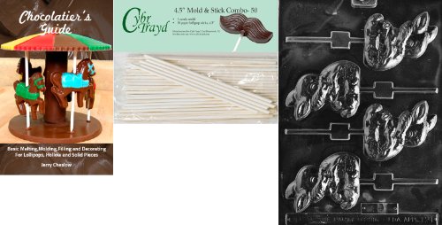 Cybrtrayd 'Happy Easter Bunny Lolly' Easter Chocolate Candy Mold with 50 4.5-Inch Lollipop Sticks and Chocolatier's Guide