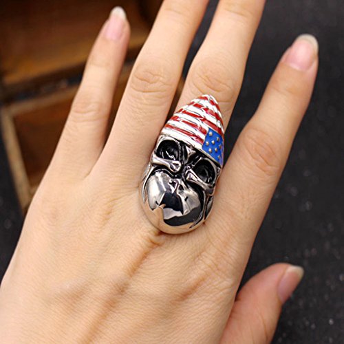 Description: - Material:Stainless SteelAnd Enamel,American Flag as A Special Mask; - Personality Cool Punk Style Design,High Polished Head; - About 25g,Hand Making Carved; - Size (L x W):Appro. 41x27mm/1.61x1.06inch; - Thick:Appro. 7mm/0.28inch Specification: - US7 Inner Diameter Appro.0.68inch Inner perimeter Appro.2.13inch - US8 Inner Diameter Appro.0.72inch Inner perimeter Appro.2.24inch - US9 Inner Diameter Appro.0.75inch Inner perimeter Appro.2.35inch - US10 Inner Diameter Appro.0.79inch Inner perimeter Appro.2.47inch - US11 Inner Diameter Appro.0.83inch Inner perimeter Appro.2.6inch - US12 Inner Diameter Appro.0.85inch Inner perimeter Appro.2.68inch - US13 Inner Diameter Appro.0.87inch Inner perimeter Appro.2.76inch Package Includes: 1 Piece Ring