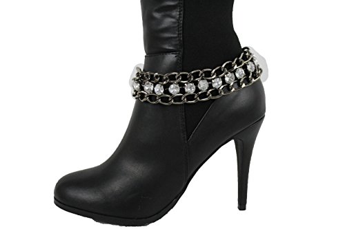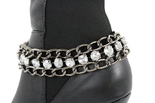 -. Binding : Jewelry -. Brand : Trendy Fashion Jewelry -. Department : Womens -. Feature : Condition: Brand new --- Made in USA / You are buying a single strap bracelet (one side) / Color: Pewter metal chains and charm + silver rhinestones and / Size: 10 1/2" - 15" long / If you want to make them smaller or bigger please let us know (we will add or take of some of the extension chain) -. Label : Trendy fashion jewelry Boot Chain Bracelet -. Manufacturer : Trendy fashion jewelry Boot Chain Bracelet -. Model : Boots accessories -. MPN : Boots accessories -. PartNumber : Boots accessories -. ProductGroup : Jewelry -. ProductTypeName : FASHIONNECKLACEBRACELETANKLET -. Publisher : Trendy fashion jewelry Boot Chain Bracelet -. Studio : Trendy fashion jewelry Boot Chain Bracelet -. Title : TFJ Women Boot Bracelet Western Pewter Metal Chain Shoe Bling Rhinestones Charm Anklet Strap