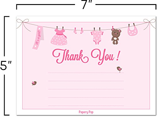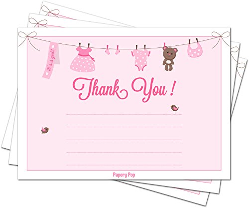 30 Baby Shower Thank You Cards for Girls (with Envelopes) - Baptism or Baby Shower Thank You Notes - Fits Perfectly with Pink Baby Shower Invitations, Supplies and Decorations