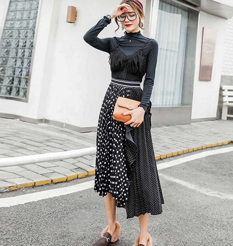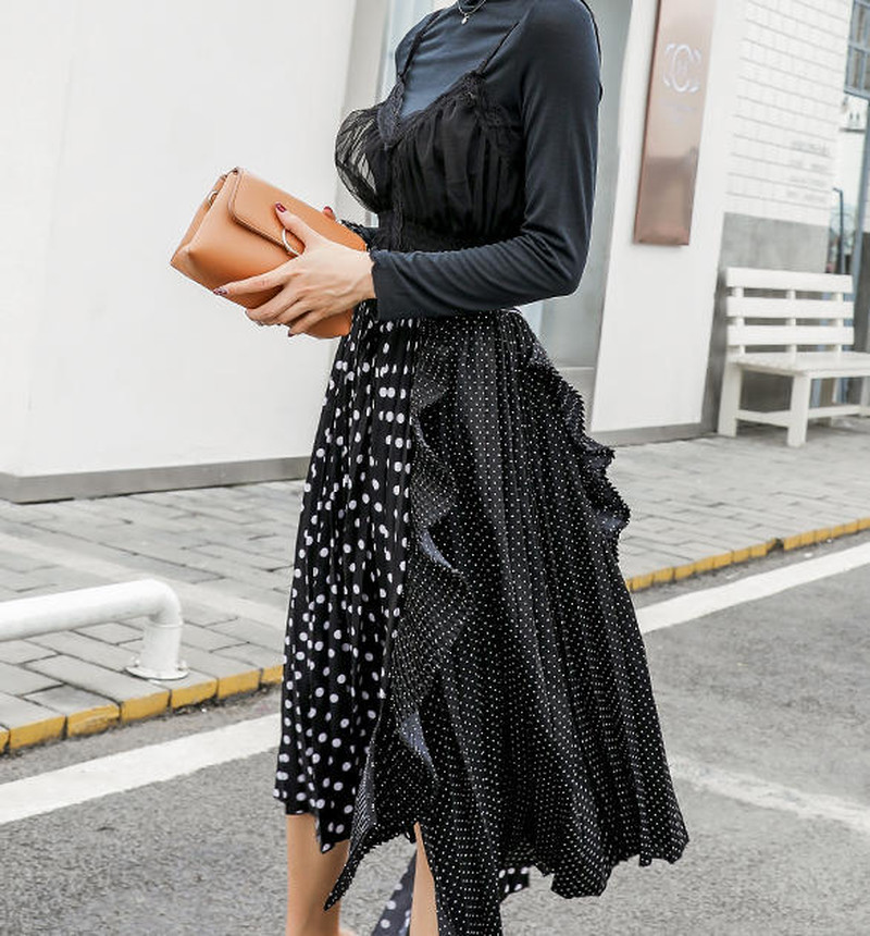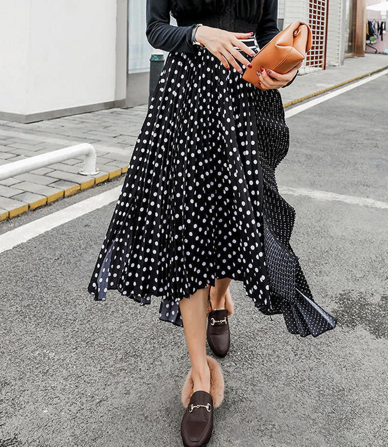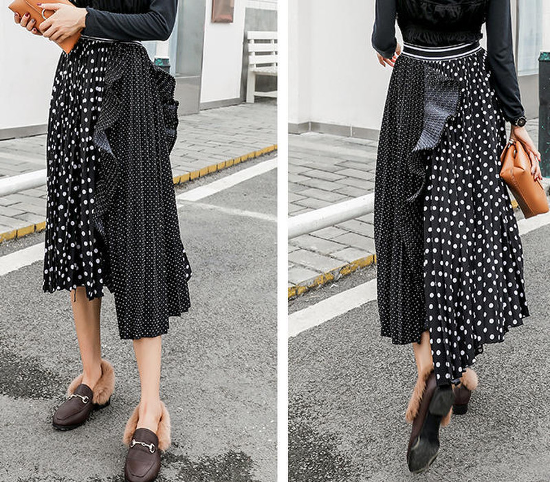 ♢ポイント♢ ドットの切り替えがおしゃれなプリーツスカートです。 カジュアルガーリーコーデに◎