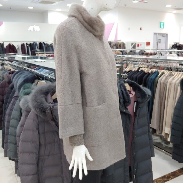 신상제품으로 넥에 밍크카라로 포인트를 준 세련된 스티일의 울 알파카 반 코트.가격이 너무나 착한 멋스러운 반 코트.정사이즈 구매.