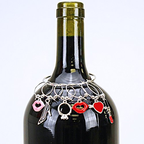 -. Title : Wine Charms ~ Lips, Heart, Lipstick, Shoe, Ring Wine Charms Set of 6 (wine charm 030 20 2 lips)