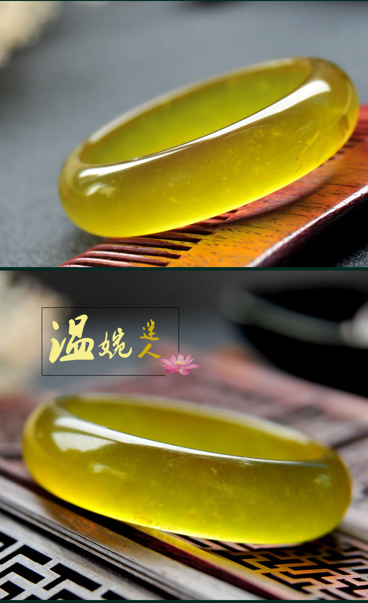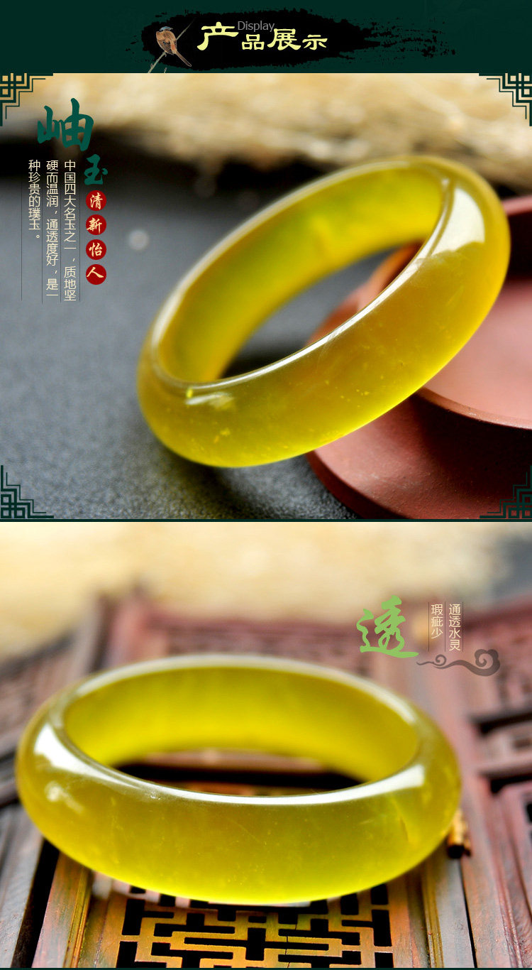 冰种淡黄色岫玉手镯玉石女手镯玉器玉镯子女款饰品手镯