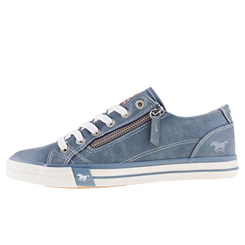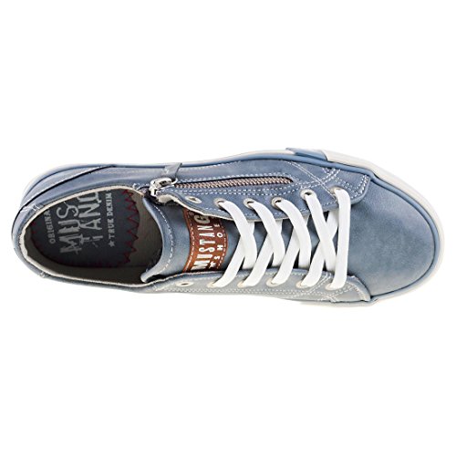 Binding : Apparel Product Description The Womens Low Top Side Zipper from Mustang combines a Synthetic upper with a durable Rubber sole. These Trainers feature Lace-up fastening, cushioned insole and Textile lining. Finished with Mustang branding, the style 1146-302-875 comes in a Sky Blue colourway. 0