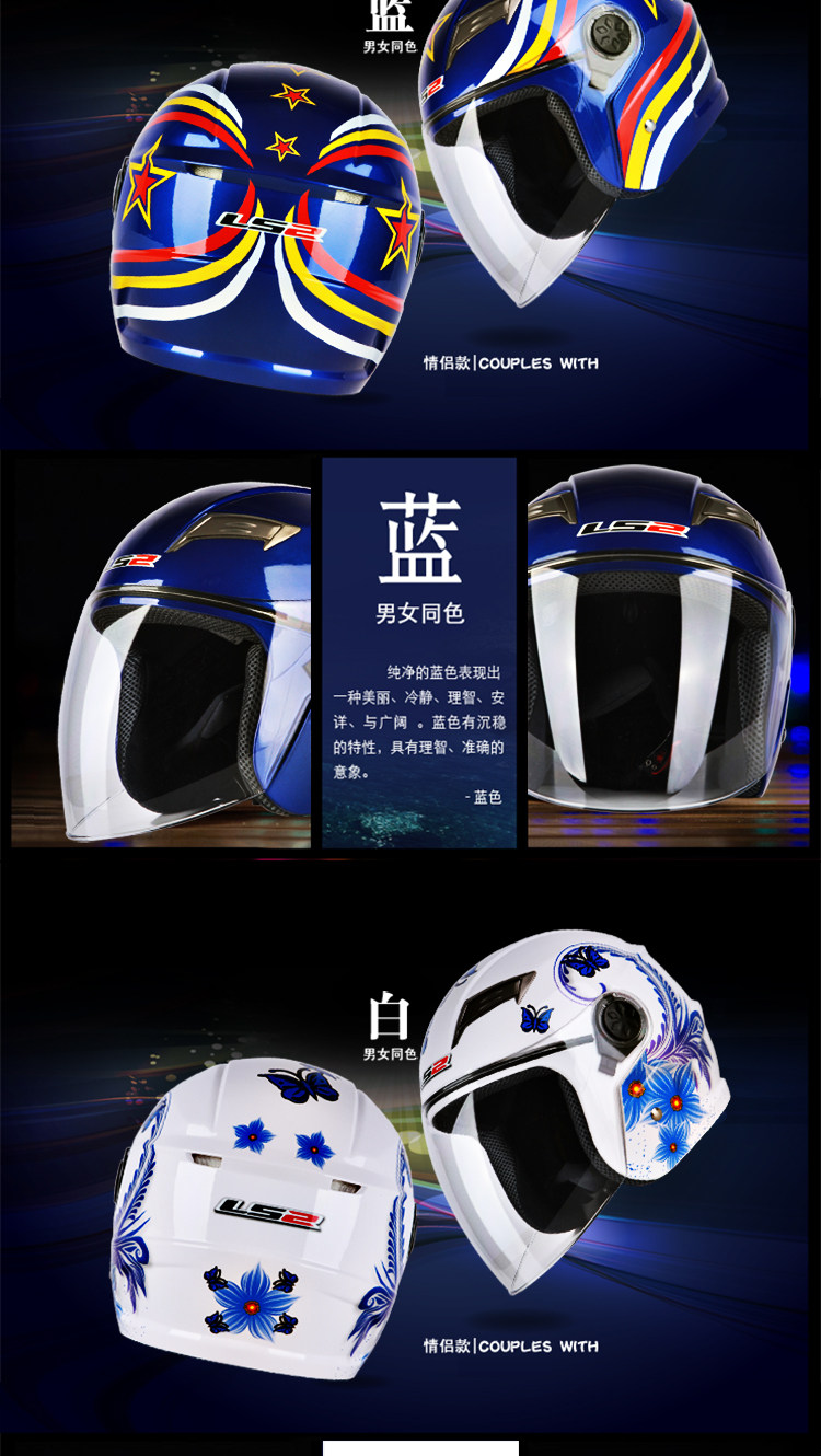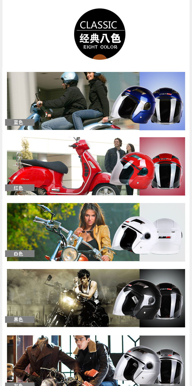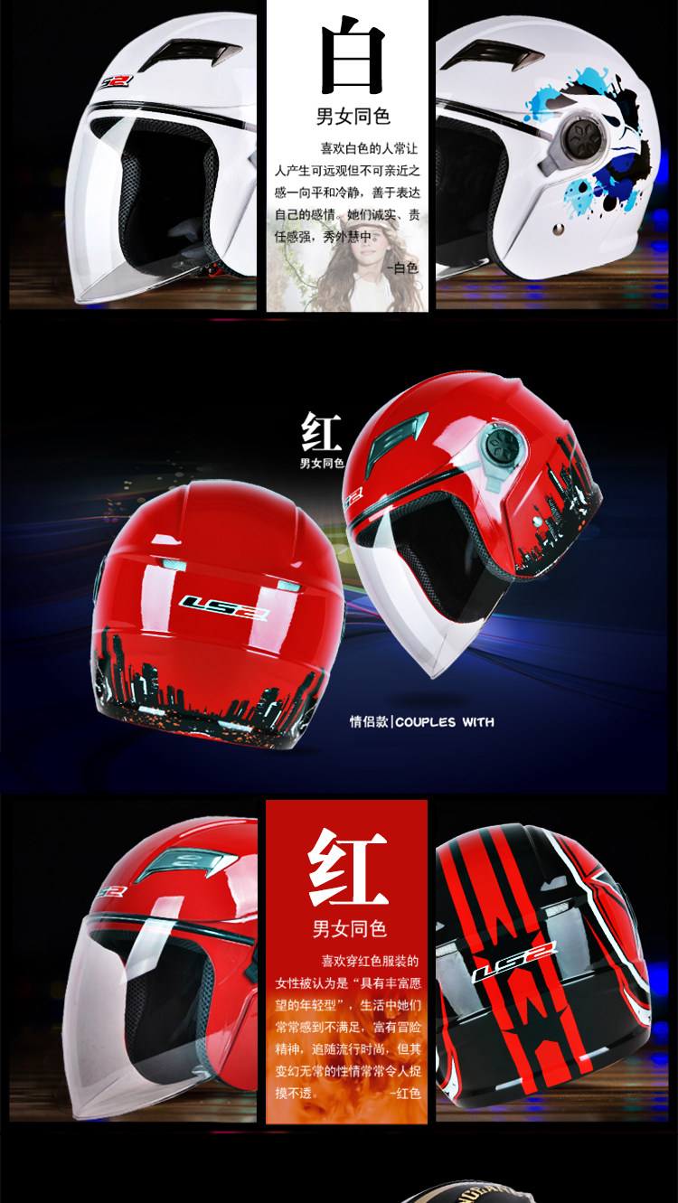 LS2摩托车头盔男 夏季半覆式电动车夏盔防晒防紫外线安全帽四季