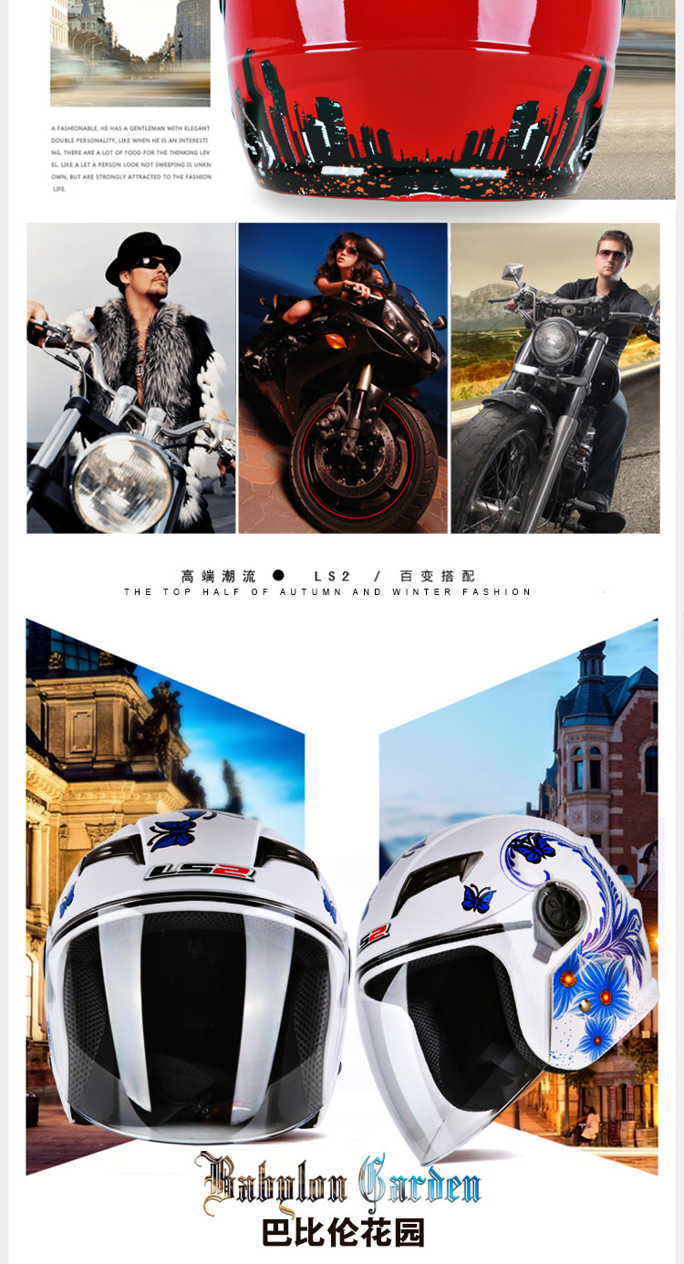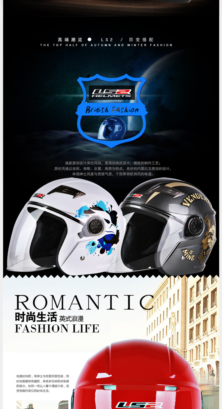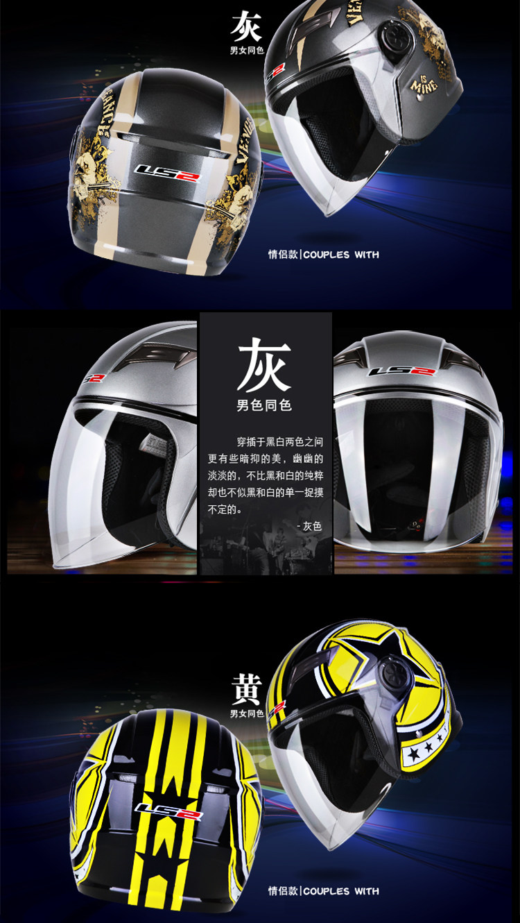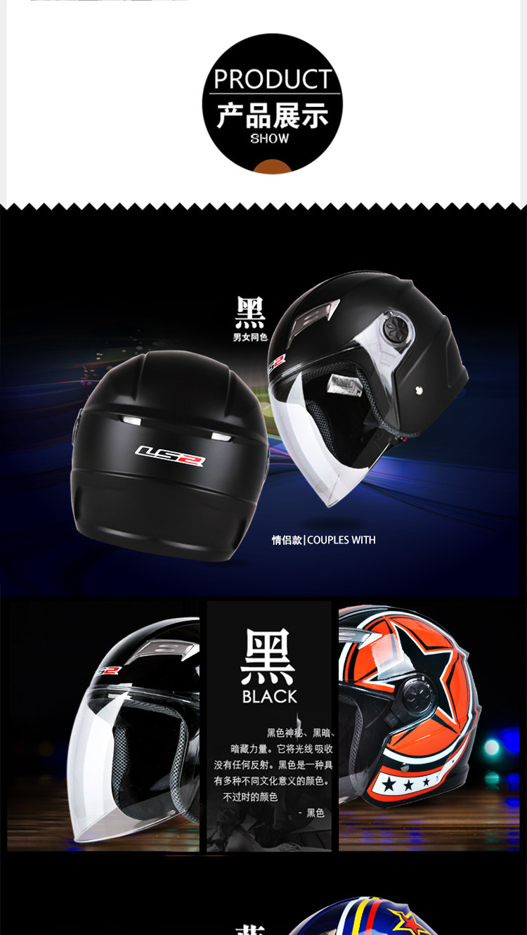 LS2摩托车头盔男 夏季半覆式电动车夏盔防晒防紫外线安全帽四季