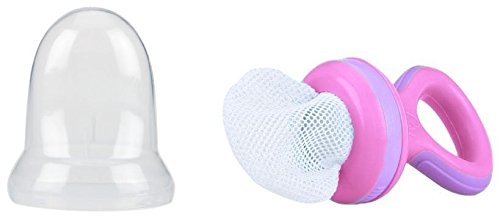 - Feature : Allows your child to eat whole foods without the risk of choking; perfect for fruits and veggies; fill with frozen treats to use as a teether / Squeeze and twist locking system, your child can safely use without risk of opening / Convenient travel cover / BPA Free / Plus One Package that has 3 Replacement Nets in the Package