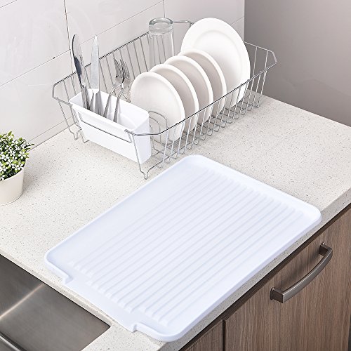 POPILION 3-Piece Kitchen Sink Side Antimicrobial Draining Dish Drying Rack,White Upgrade Version