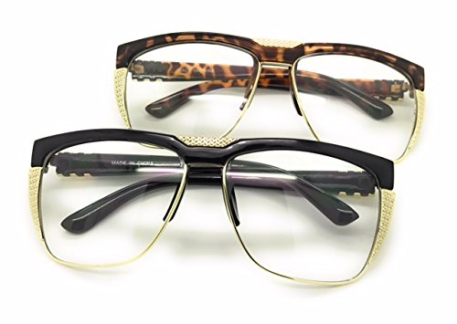 MyUV Gold Oversize Flat Top Square Clear Lens Aviator Men Women Eyeglasses