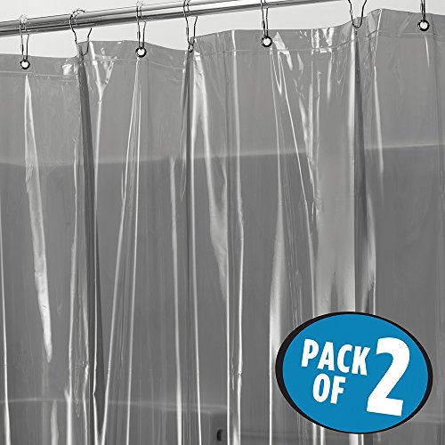 mDesign Vinyl 4.8 Gauge Waterproof Shower Curtain Liner - Pack of 2, Stall, 54" x 78", Smoke