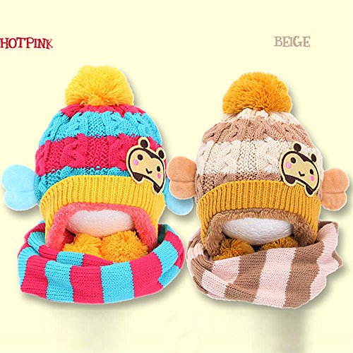 Binding : Apparel Product Description Features: 100% Brand new and high quality Quantity:1PC Baby Hat,1PC Baby Scarf Season for Spring,Autumn and Winter New fashion design, Very popular,Very flexible Its special design will make baby look unique Elegant design, can put in your bag when needed at any time It is a good gift for your kids Hat Size:19*19CM,Scarf Size:110*16CM Fit for 0-36 month old baby Material::Knitted Woolen Package Include: Quantity:1PC Baby Hat,1PC Baby Scarf