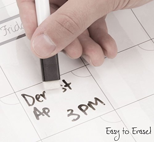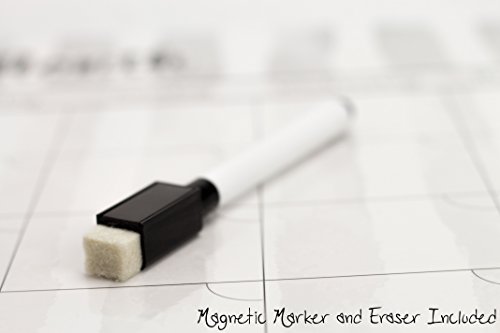 FITS PERFECTLY ON FRIDGE: 12" x 16" and 30mil thick calendar will fit on and attach to any size refridgerator or your money back. Also includes a BONUS magnetic black marker with built in eraser!