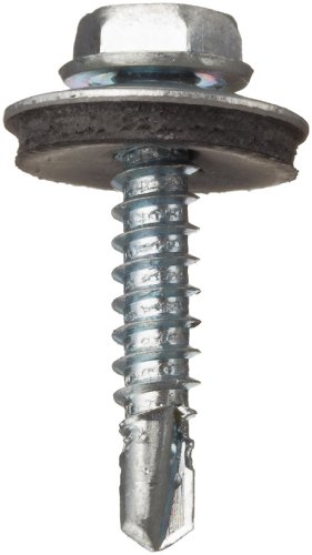 Steel Self-Drilling Screw, Zinc Plated Finish, Hex Washer Head, External Hex Drive, Sealing, Includes Washer, 3/4" Length, #10-16 Threads (Pack of 100)