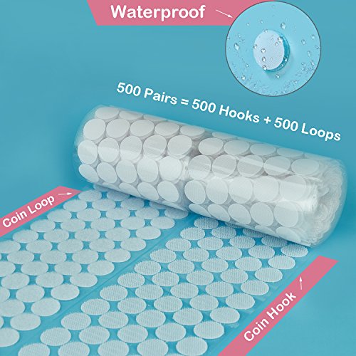 Waterproof Self Adhesive Dots Sticky Back Hook & Loop Sticker Round Coin Glue Wall Fastener 0.75" Diameter 500pairs By WISHGO(White)