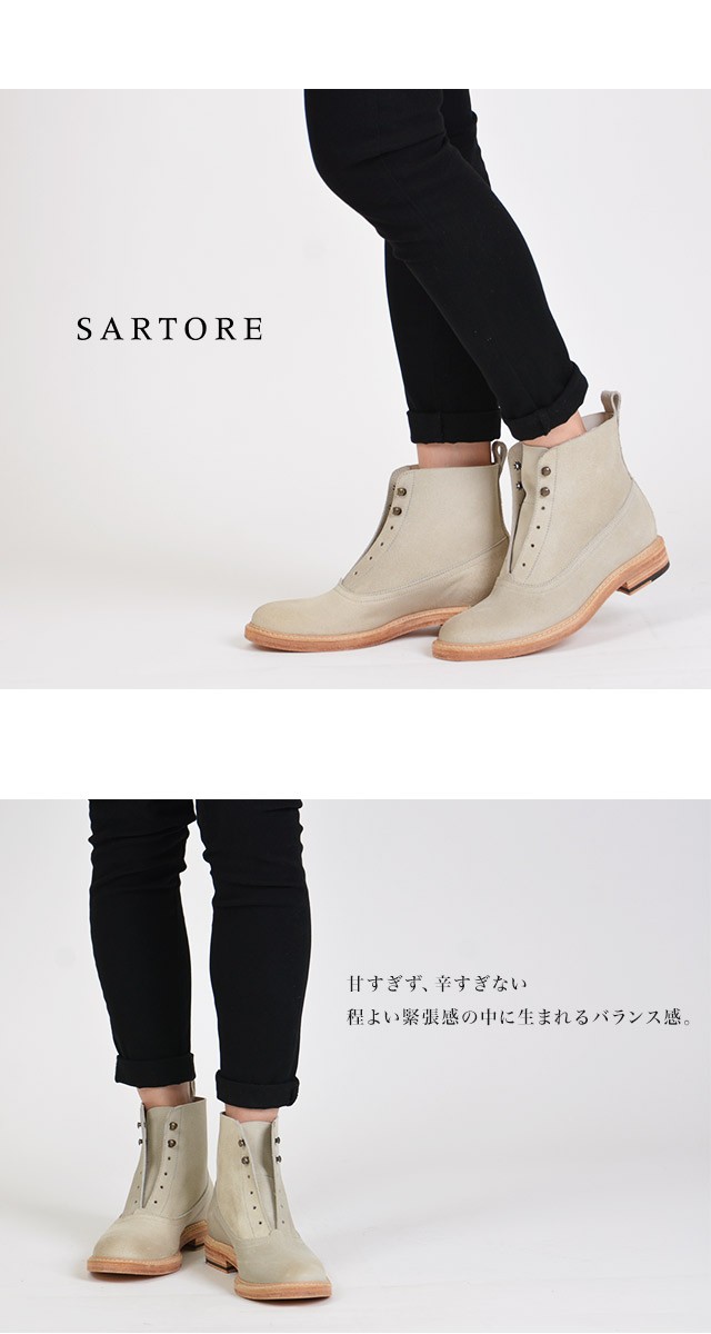 | 商品詳細 | 【訳あり】【アウトレット】こちらは当社の厳重な検品基準に外れた「特別ご提供品」となります当社のご案内する「特別ご提供品」は本当にわずかな「難あり」となりますが全くの「新品・正規品」です。海外で買付けしている関係で、日本国内に到着するまでの輸送過程で付いた「傷」「シワ」「汚れ」「日焼け」「付属品の不足」などが主な理由です。質屋やリサイクル・ショップなどで販売している「他人が一度使用した」ようなリサイクル商品(中古品)等では一切ございませんので安心してお買い求めください。こちらは特別ご提供商品となりますので「返品・交換」はお断りさせていたいておりますのでご了承ください。 ●こちらの商品は、箱に汚れと色褪せ、ブーツに若干の汚れがあるためアウトレット商品になります。お使いいただくには全く問題ございません!もちろん商品は新品、未使用になります。 SARTORE(サルトル) フランス発のシューズブランド『SARTORE(サルトル)』。1930年代、ニースの北にあるフランスの町、ブレイユ=シュル=ロワイヤで靴店と修理屋を兼ねた小さなお店から「サルトル」は始まりました。 ニースの小さなお店だった「サルトル」は、1959年に息子のポール・サルトルとマルセル・サルトルの夫妻が南フランスにて自前のシューズ制作の工房を設立します。 サルトル夫婦は、ポールが靴のクリエーション、マルセルが経営という分担で、数々の成功を収めていきました。 1978年より娘のカトリーヌとフランソワーズをブランドのメンバーに加え、SARTOREがブランドとしてより洗練されたイメージを確立していきます。 幼い頃から靴に囲まれて育ち、両親が教えてくれる様々な文化に慣れ親しんだ姉妹は、父母の仕事に新たな感覚を持ち込んだようです。 「サルトル」の不動の人気を裏打ちしているのは、最上級のなめし皮を使い、奥深いクラフトマンシップを映す製法です。 90年代未に南フランスの工場を閉じ、生産をすべてイタリアに移したのも、上質なブーツを生み出す、一流の技術を求めての事です。 履いたときの抜群のフィット感と、ため息が漏れそうな美しいシルエットは丹念になめされた革の質感に支えられています。 様々な色を重ねてあの神秘的な奥行きのある革色を引き出す「パティーヌ」と呼ばれる染色技法まで一家は独自に研究を重ねて、作品に注ぎ込んできました。 そこに、アートデイレクシヨンを担うカトリーヌ・サルトルの着想が落とし込まれて、毎シーズン、新たな「サルトル」が生まれます。 カトリーヌのアイデアは、ありきたりのブーツとは別物のポジションに「サルトル」を位置付けてきました。 「サルトル」のブーツに特有のエスプリやクラシック感はカトリーヌの着想と、伝統を重んじた工程があればこそ。 だから、長く履き続けても、時代遅れにならず、どんなトレンドの着こなしにもなじむのです。 ハイエンドなクオリティーのブーツを、あえて普段使いに落とし込んでみる。大人のこなれたおしゃれの知恵と言えます。 スウェードショートブーツ SX253 PANA ベージュ ワードローブとして1足は持っておきたい、マニッシュで颯爽とした雰囲気のスウェードショートブーツのご紹介です。 一見メンズの要素が多いデザインですが、よく見てみると程よくシェイプされた足首のライン、すっと背筋が伸びるかのようななめらかな弧を描く甲の湾曲は女性らしい豊かなイメージを与えてくれます。 ボディの優しいクリーミーなベージュの色合いは、足元の印象をグっと華やかに盛り立ててくれます。 ところどころに施されたヴィンテージ調の加工は1足の靴の中で陰影を生み、こなれた印象を与えてくれます。 甘すぎず、辛すぎない、程よい緊張感の中に生まれるバランス感。 このブーツのデザインの最大の特徴となっている足首から甲中にかけてのシューレースホールは足元に知性を宿らせています。 元々紐が付かないブーツですが、お手持ちの紐を合わせて履いていただいてもOK。 紐を通さずに履くとうまれる凛とした自由さは、サルトルのブーツだからこそ表現できるアイデンティティです。 時代を超えて履き続けたくなる靴とはまさにこの靴のことなのかもしれません。 ※こちらの商品は天然皮革を使用しておりますので、若干の色ムラ、擦れ、へこみが見られる場合がございますが、こちらは素材の特性上となりますので予めご了承下さいませ。 【関連ワード】ショートブーツ ブーツ レザー レディース 靴 シューズ レザー 無地 通勤 通学 旅行 コーディネート コーデ ギフト プレゼント 母 お祝い 誕生日 大人カジュアル 大人かっこいい レディス スタイル コンパクト シンプル レディース 女性用 おしゃれ ペタンコ ぺたんこ カジュアル ローヒール かっこいい カッコイイ メンズライク ハンサム 歩きやすい 楽ちん | ||