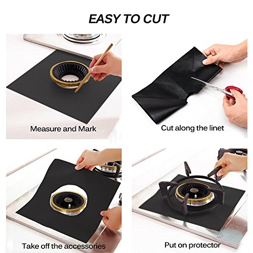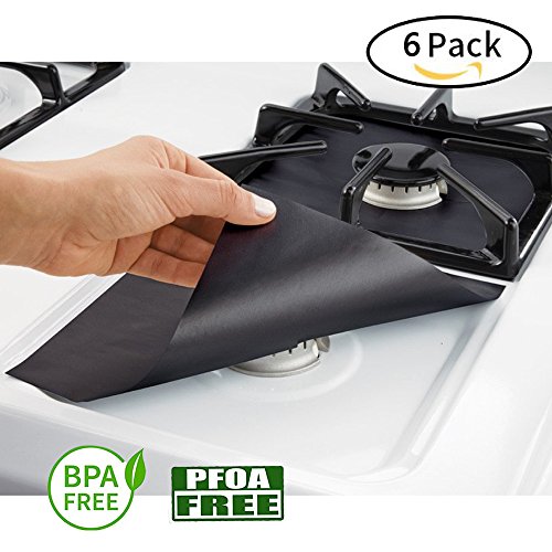 Stove Burner Protectors 6 Packs, FengNiao Reusable Cuttable Protectors for Gas Range Stovetop Burner(Black)