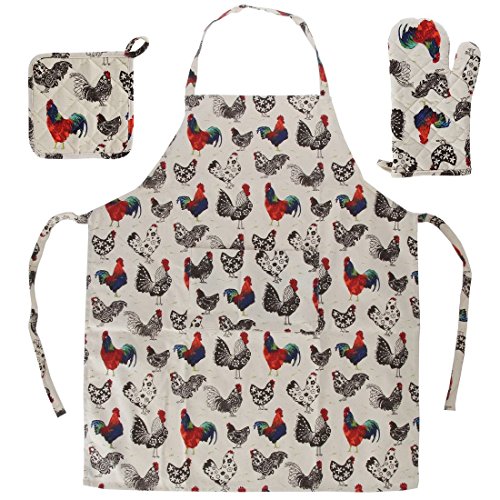- DURABLE COTTON CANVAS - 3 Piece Rooster Kitchen Linen Set made from heavy-duty cotton canvas.
