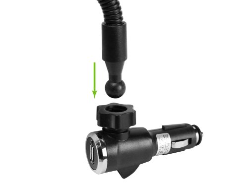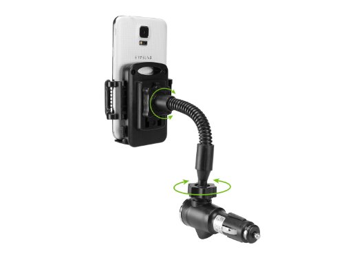 - Feature : Holder allows you to hold your device in plain view as you charge / 12V outlet (cigarette lighter socket) is USB cable ready / Adjustable sliding arms accommodates devices up to 4.3 inches wide / Flexible goose neck arm can be adjusted to any desired orientation / Charging cables are sold separately