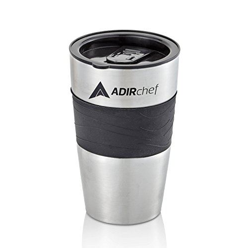 AdirChef 15 oz. Travel Mug, Black/Stainless Steel For Grab N' Go Personal Coffee Maker