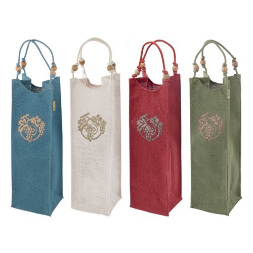 Cakewalk 0174 Grapes Single Bottle Jute Wine Bag, Blue/White/Red/Green/Gold