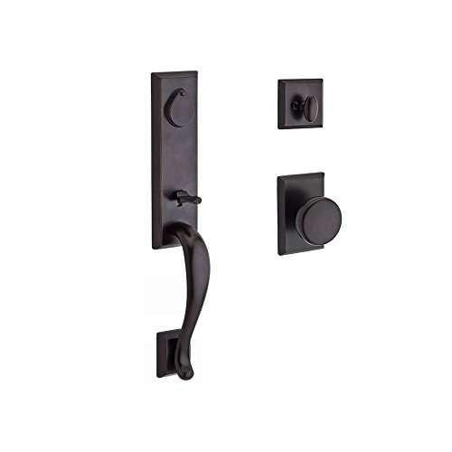 -. Title : Baldwin SCFAIXRUSRSR481 Reserve Single Cylinder Handleset Fairbanks x Rustic with Rustic Square Rose in Dark Bronze Finish