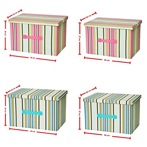 It is a beautiful high quality Foldable Storage Box, which make of canva. The box is designed with blue, green, brown and yellow stripes, which made it not only a simple box to store staff, but also a perfect home decor material which is fashionable, classic and decent.