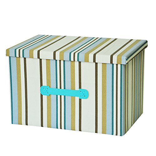 RayLineDo 26L Foldable Canvas Storage Box Bag Clothes Blanket Closet Sweater Organizer Home Docor Box In Blue stripesWith Economical Package's Great Christmas Gift