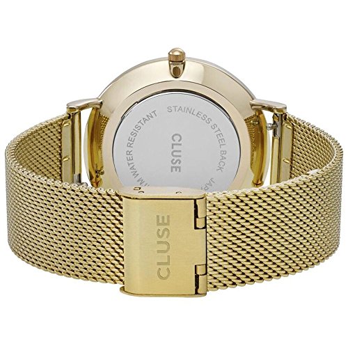 This La Boheme model features an ultrathin case with a 38 mm diameter, crafted with precision. Black and gold are combined with a refined stainless steel mesh strap. The strap is easily interchangeable, allowing you to personalise your watch.