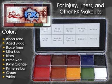 -. Feature : Skin Illustrator FX Palette / 99% Alcohol Activated / Professional product / an industry staple for realistic skin effects / waterproof, extremely long lasting.